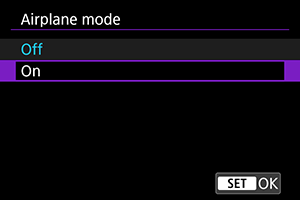 • [Airplane mode] може да не се показва по време на заснемане на снимки, запис на видео или възпроизвеждане в зависимост от настройките за показване на информация. Ако символът не се показва, натиснете бутона INFO многократно, за да превключите екрана към показване на детайлна информация.