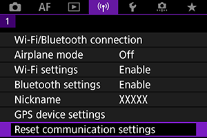 • Всички настройки за безжична комуникация могат да бъдат инициализирани, като изберете опцията [Communication settings/Комуникационни настройки] за [Other settings/Други настройки] в [Set-up: Reset camera/Set-up: Инициализиране на фотоапарата].