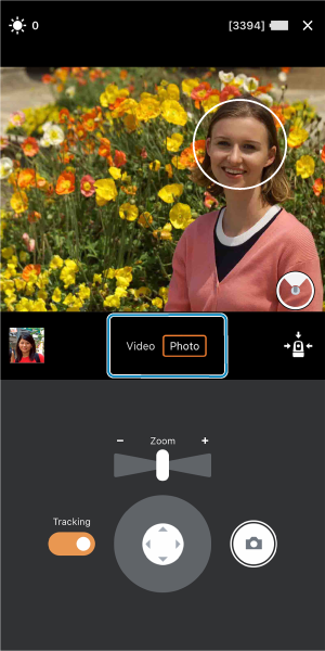 Снимайте от разстояние, като наблюдавате изображението на екрана на смартфона Можете да проверите изображението, докато снимате групови снимки или докато снимате обекти, които камерата проследява автоматично.