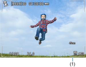 : AF зона] е [Whole area AF/AF в пълна зона]. Когато натиснете спусъка наполовина, се появяват рамки на AF зоната (1). След постигането на фокус AF точката се оцветява в синьо.