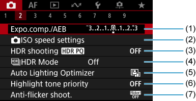 - (1) Expo.comp./AEB/Компенс. на експонацията/AEB