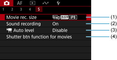 - (1) Movie rec. size/Резолюция на видеозаписа