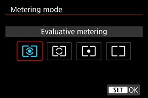 Достъпни са четири метода (режима) за измерване на яркостта на обекта. Обикновено се препоръчва режимът за оценъчно мерене на осветеността. Оценъчно мерене се задава автоматично в режимите от „Основна зона“ на програматора(с изключение на режим :