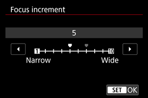 Задайте стъпката на изместване на позицията на фокуса. Тази стойност се настройва автоматично в съответствие със стойността на отвора на диафрагмата по време на снимане.