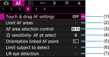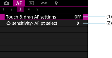 - (1) Touch & drag AF settings/Настройки на функцията „AF с докосване и плъзгане“