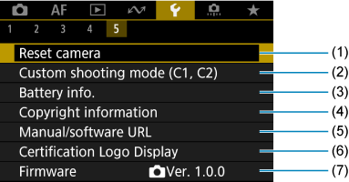 - (5) Fine-tune VF color tone/Фина настройка на цветовата тоналност на визьора