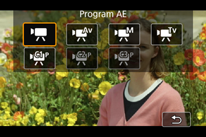 [] ви позволява да зададете предпочитаната скорост на затвора за запис на видео. ISO светлочувствителността и отворът на диафрагмата се задават автоматично, за да съответстват на яркостта и да се постигне стандартна експонация.