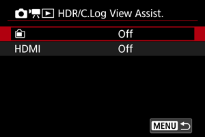 Помощ при възпроизвеждане за HDR/C. Log] (, ).