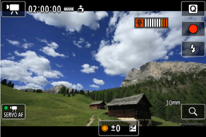 Символът [] започва да мига в червено, ако продължите да записвате, след като индикаторът е достигнал ниво 9, оцветено в оранжево. Мигащият символ показва, че фотоапаратът скоро ще се изключи автоматично.