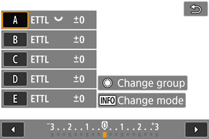 , за да изберете група светкавици (A–E), която да конфигурирате.