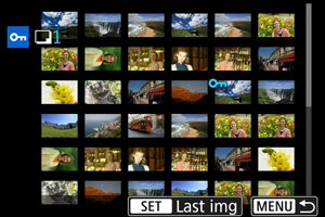 Наблюдавайки екран с множество изображения, можете да зададете диапазон (първо и последно изображение) от изображения, които да защитите едновременно.