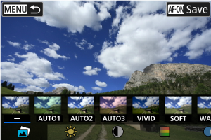 , можете да изберете [VIVID], [SOFT] или други предварително зададени ефекти. [AUTO1], [AUTO2], и [AUTO3] са ефекти, препоръчани от фотоапарата въз основа на характеристиките на изображението.