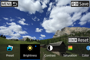 - Можете да избирате ефекти като [Brightness/Яркост] или [Contrast/Контраст], като натиснете