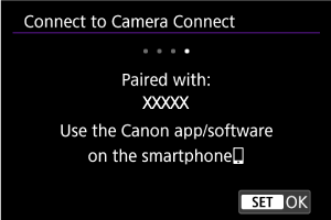 - Показва се съобщение, ако фотоапаратът вече е сдвоен с друго устройство. Изберете [OK], за да прекратите текущата Bluetooth връзка.