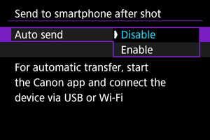 Изберете [Send images to smartphone/Изпращане на изображения към смартфон].