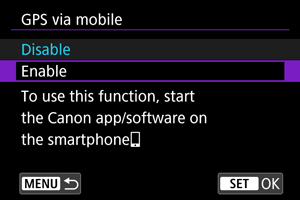 Изберете [GPS via mobile/GPS чрез мобилен телефон].