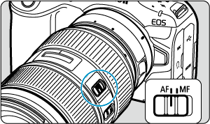 - За предпазни мерки за обектива вижте Монтиране и демонтиране на обективи RF/RF-S.