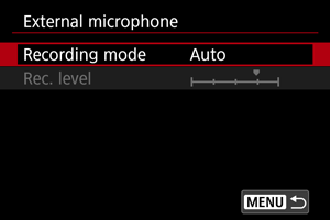 Когато е зададена настройка [External microphone/Външен микрофон]