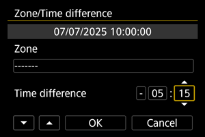 - След промяната на [Zone/Time difference/Зона/Часова разлика], проверете дали са зададени правилните дата/час.