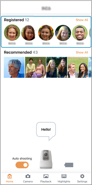 Up to 12 people recognized by the camera are automatically registered.