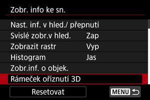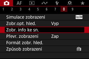 vyberte obrazovky s informacemi, které se mají na fotoaparátu ukazovat.