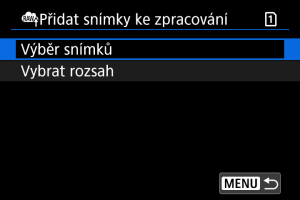 Vyberte možnost [Přidat snímky ke zpracování].