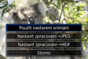 - Pokud používáte [Nastavit zpracování→JPEG] nebo [Nastavit zpracování→HEIF], vyberte [