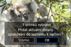 Když se zobrazí zpráva informující o odstranění snímků ze seznamu pro nahrání, vyberte možnost [OK].