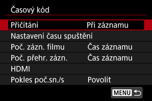 K nastavení časového kódu použijte funkci [: Časový kód].