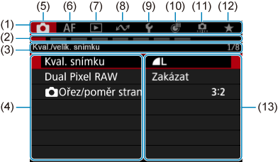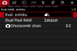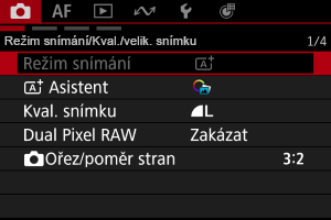 - Přepněte hlavní kartu (skupina funkcí) pomocí páčky zoomu.