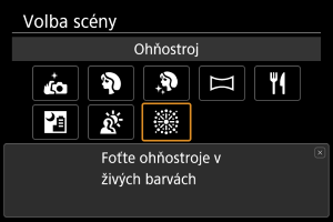 Pomocí režimu [] (Ohňostroj) můžete snímat ohňostroje v živých barvách.