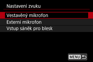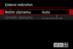 Konfigurace nastavení pro externí mikrofony využívající vstupní konektor pro externí mikrofon.