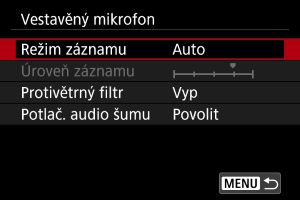 Pro konfiguraci nastavení pro vestavěný mikrofon.