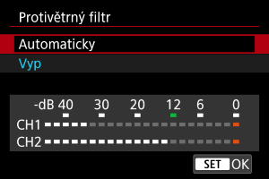 Je dostupný při používání vestavěného mikrofonu nebo mikrofonů pro multifunkční patici, které jsou kompatibilní s protivětrnými filtry.