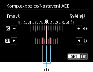 nastavte rozsah automatického bracketingu expozice (AEB) (1).