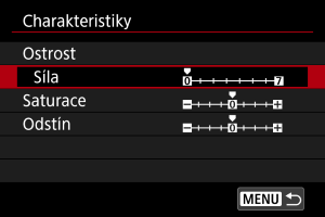 V případě potřeby upravte. Vyberte možnost ([Ostrost: Síla], [Saturace] nebo [Odstín]), upravte úroveň efektu a pak stiskněte .