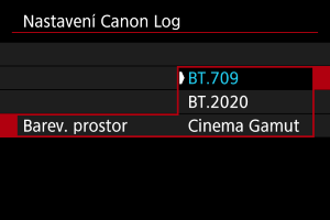 Vyberte možnost [BT.709], [BT.2020] nebo [Cinema Gamut] jako barevný prostor při záznamu na karty.