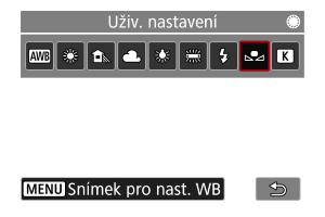 U uživatelského nastavení vyvážení bílé můžete ručně nastavit vyvážení bílé pro konkrétní zdroj světla místa fotografování. Provádějte tento postup pod zdrojem světla na místě aktuálního fotografování.