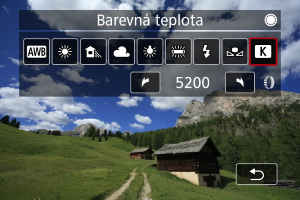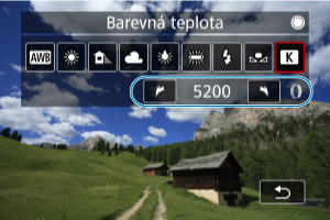 Je možné nastavit hodnotu představující barevnou teplotu pro vyvážení bílé.