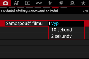 Záznam filmu lze zahájit samospouští.