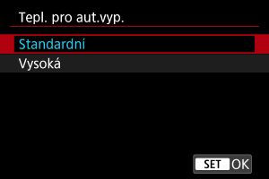 Můžete nastavit maximální teplotu těla videokamery, při které se videokamera automaticky vypne. Pokud nastavíte vyšší teplotu než standardní, může se prodloužit dostupná doba snímání, protože se deaktivují určitá provozní omezení.
