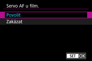 : Servo AF u film.] nastavena na možnost [Povolit].