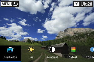 - Můžete vybrat efekty, například [Jas] nebo [Kontrast], a to stisknutím tlačítka