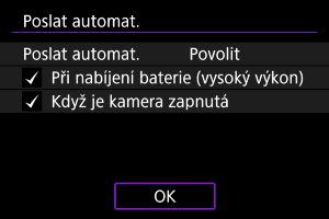 - [Když je kamera zapnutá]: Automatické odeslání začne, až bude videokamera vypnutá.