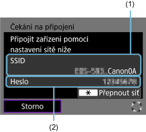 - Zkontrolujte SSID (1) a Heslo (2) zobrazené na obrazovce videokamery.