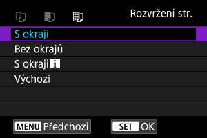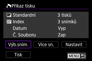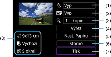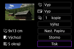 Obrazovka nastavení tisku