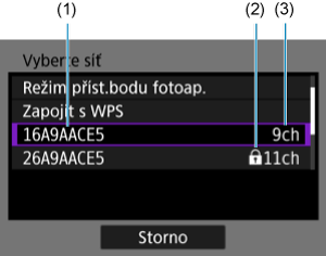 Na obrazovce [Vyberte síť] vyberte přístupový bod.