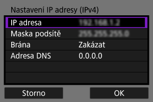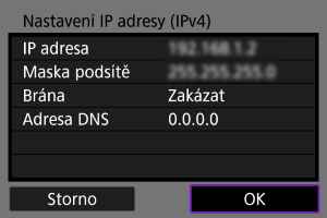 Nastavte adresu IP ručně. Vezměte prosím na vědomí, že zobrazené položky se liší v závislosti na komunikační funkci.