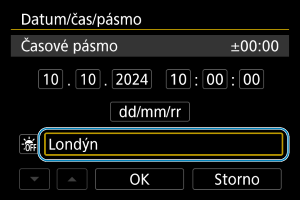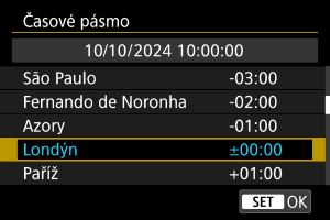 vyberte [Časové pásmo] a poté stiskněte tlačítko