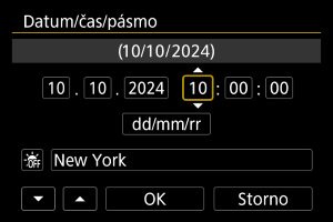 - Po změně [Pásmo/rozdíl času], zkontrolujte, zda byly nastaveny správné datum/čas.